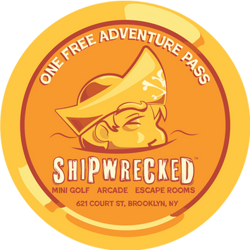 The guys at Shipwrecked, a mini golf course located in Red Hook in Brooklyn, tasked me with redesigning the Adventure Pass, a buy 1 get 1 free coupon that they hand out at various events and gatherings.
